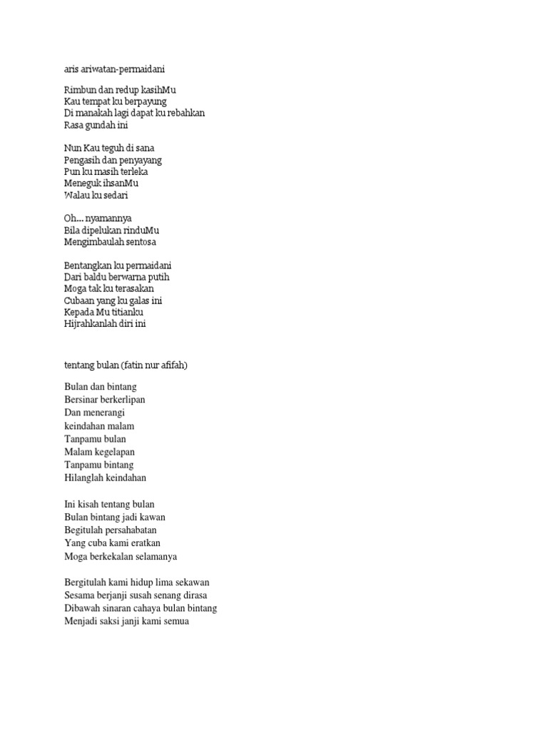 To avoid this cancel. Kehidupan pula bukan lah selama2nya kembalilah kepada yang Maha ESA sesungguhnya ia pengasih dan. May 93 - Mac 94kecuali lagu Permaidani yang dirakam semula pada Mei 94 di Channel II JururakamIzan Channel II David Reza Sam Jacky King Studio Juruadun.